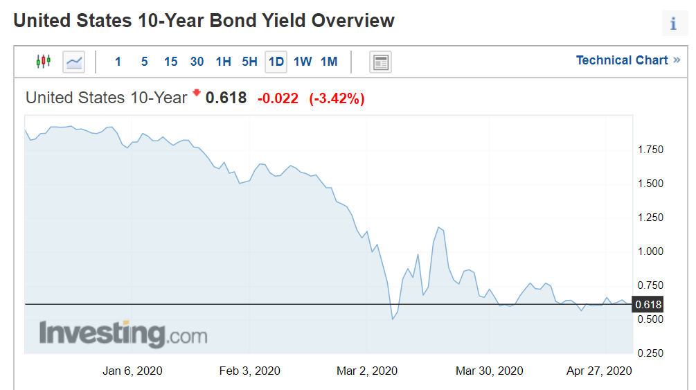 미국채 수익률 - 미국채 가격이 올라가서 내려오지 않고 있는거 보면, 아직 대부분의 메이져들은 위기상황으로 인지 하고 있슴.