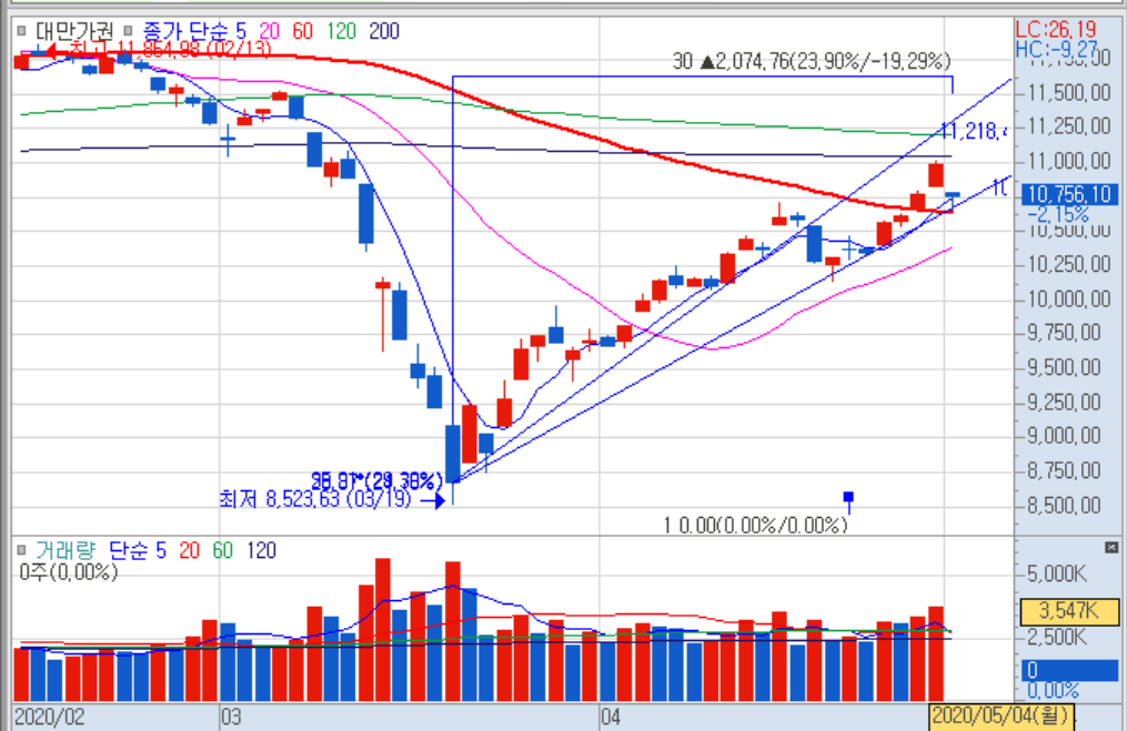 대만가권 - 단기고점인가... 머리 만들고 오는중인지...