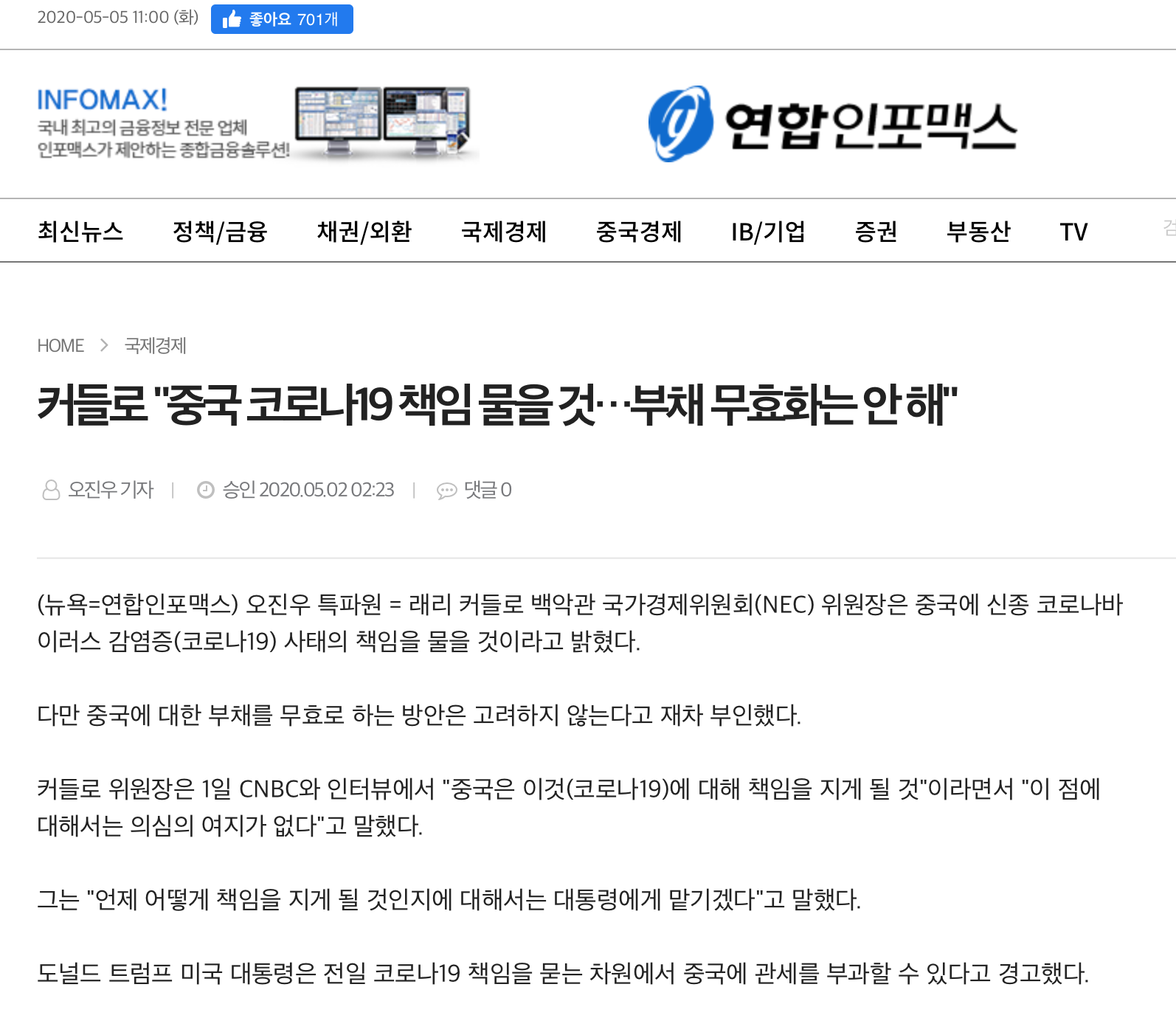 현재 다시 중국의 코로나 책임론이 부각되고 있슴.