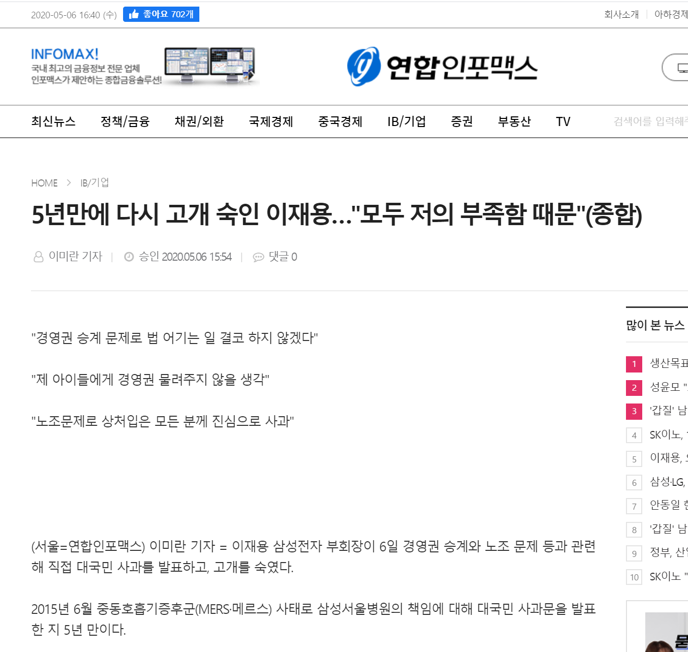 이재용 대국민 사과???? 쎄한 느낌의 기사임... 본문