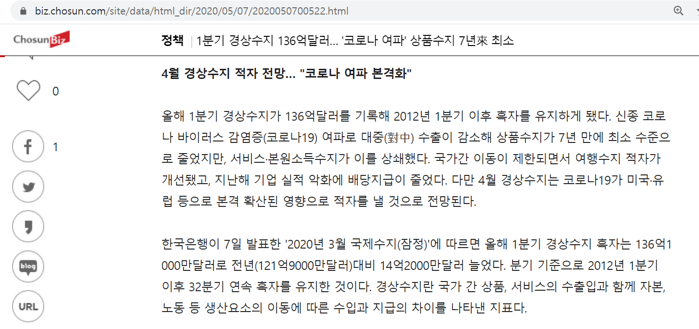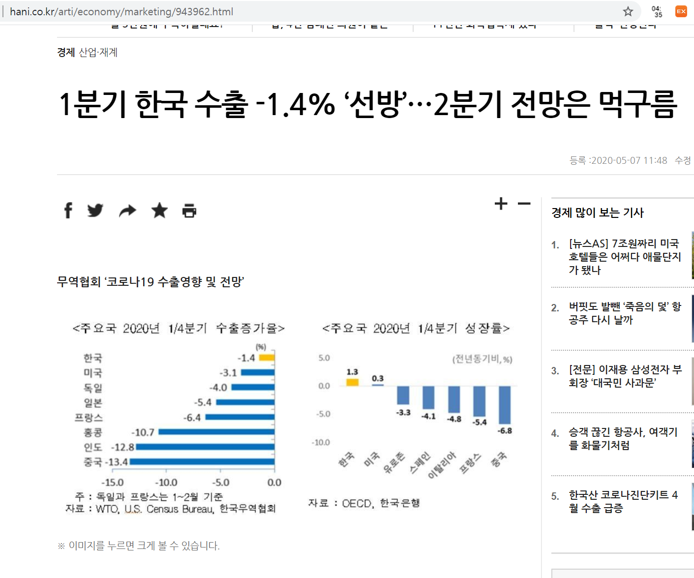 5월 중반부터는 증시도 이제 실물경제를 반영할것인가.. 경상수지가 흑자이긴 하나.. 이게 진짜 선방한 것인가.... 실물경제상황은 엄청난듯.