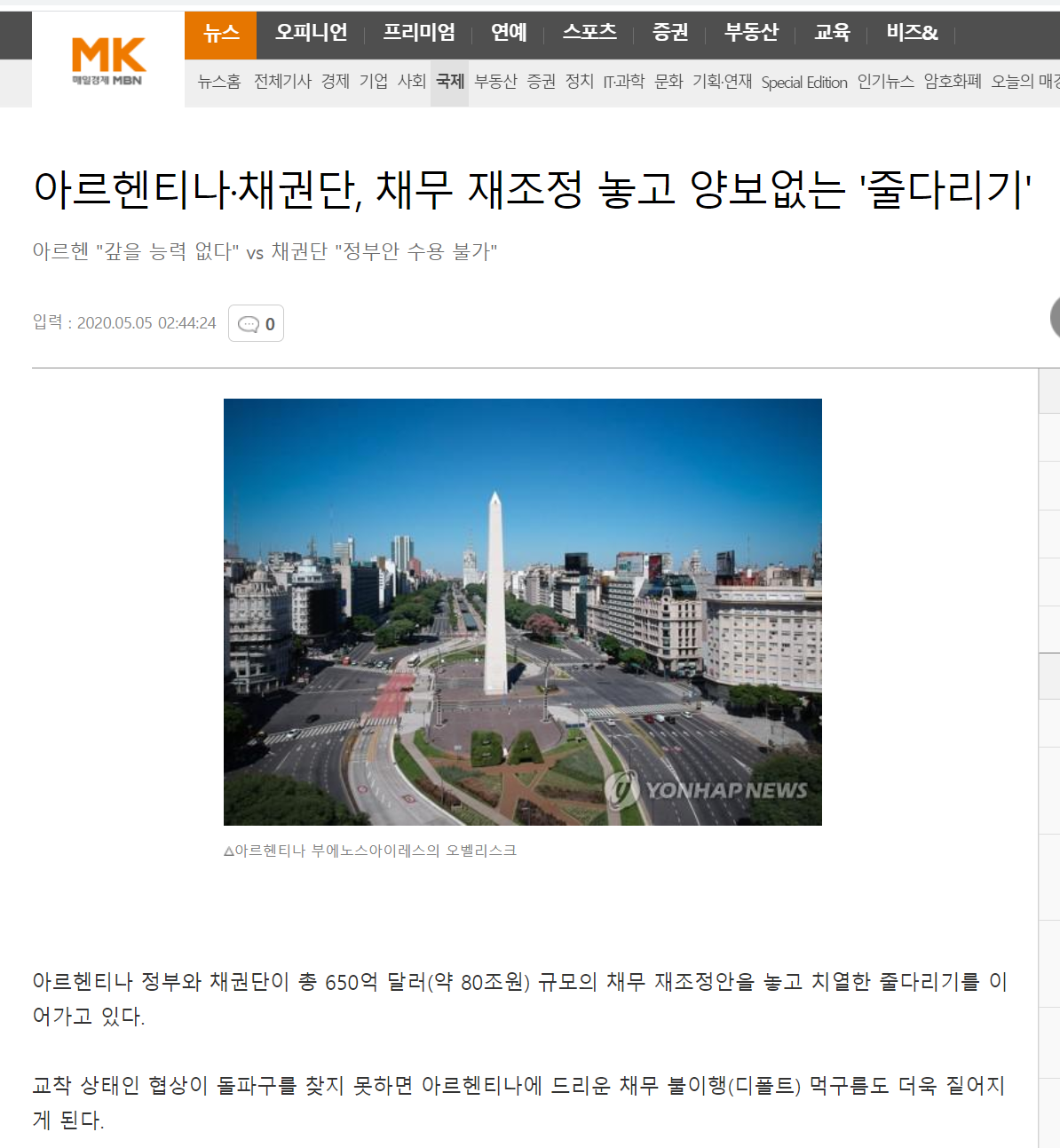 그다음이 아르헨티나.. 아니나 다를까 기사가 저렇고....