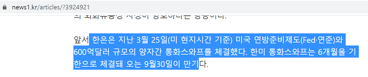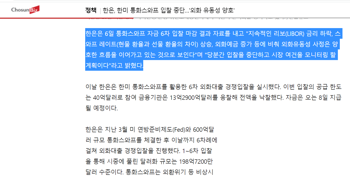 한미통화스와프... 입찰중단했다고 함. ㅅㅂ 지금 다들 돈이 없어서 난리 아닌가 하는데..