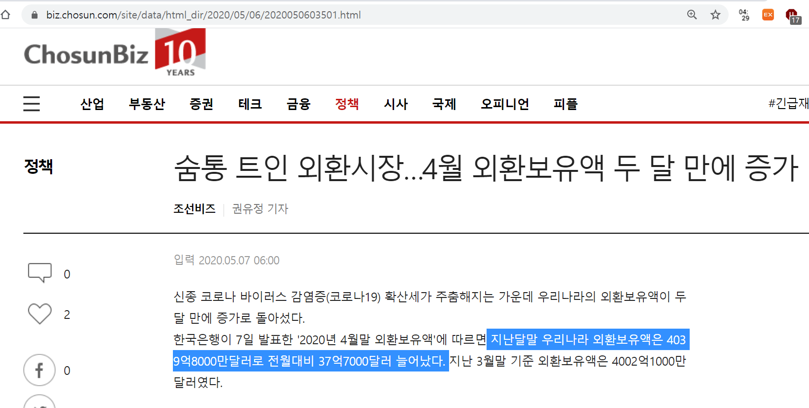 지금이 우리상황이 달러 기축국 혹은 달러인덱스에 편입되는 준 기축국이 아니므로, 매우 위험한 상황인것이 맞다고 판단이됨. 따라서 지금 상황에서 뭐를 찾아봐야 할까 생각을 해보니 환율 관련 기사들을 일단 모아보기로 함.