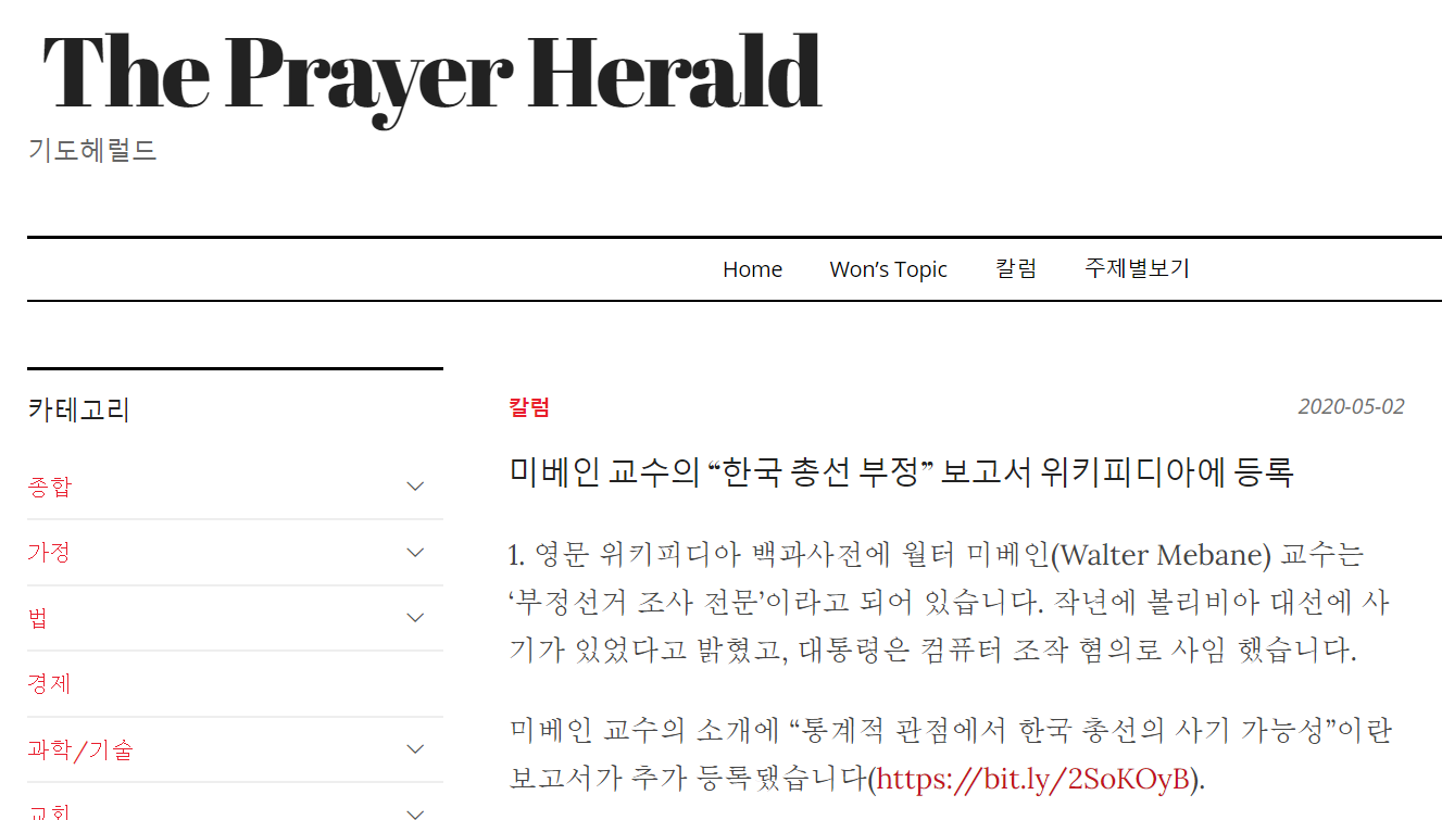 미베인 교수의 “한국 총선 부정” 보고서 위키피디아에 등록