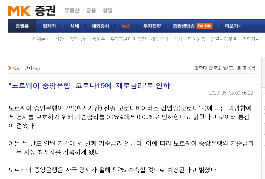 노르웨이 중앙은행 0% 금리 시작.