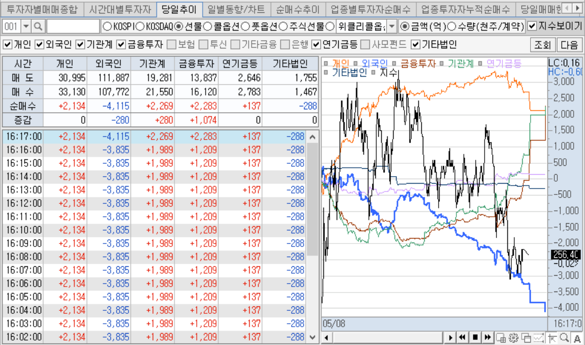 현물 - 금요일 개인만 팔고 모두 매수포지션..