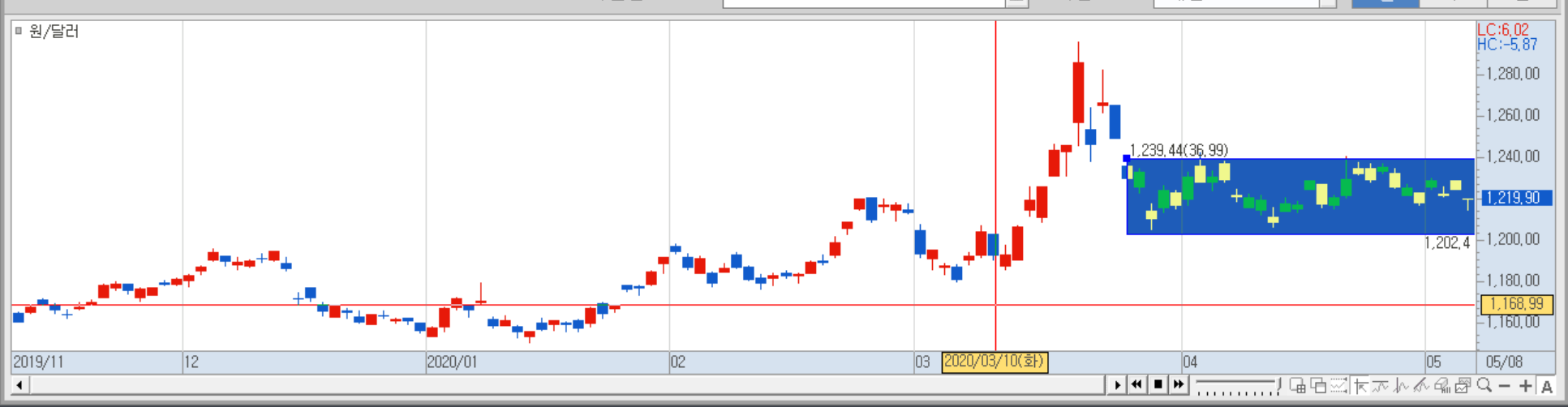 환율이 지속적으로 박스권에 있다. 아직 달러가 어떻게 글로벌 경제를 끌어갈지 결정을 내리지 않은듯..