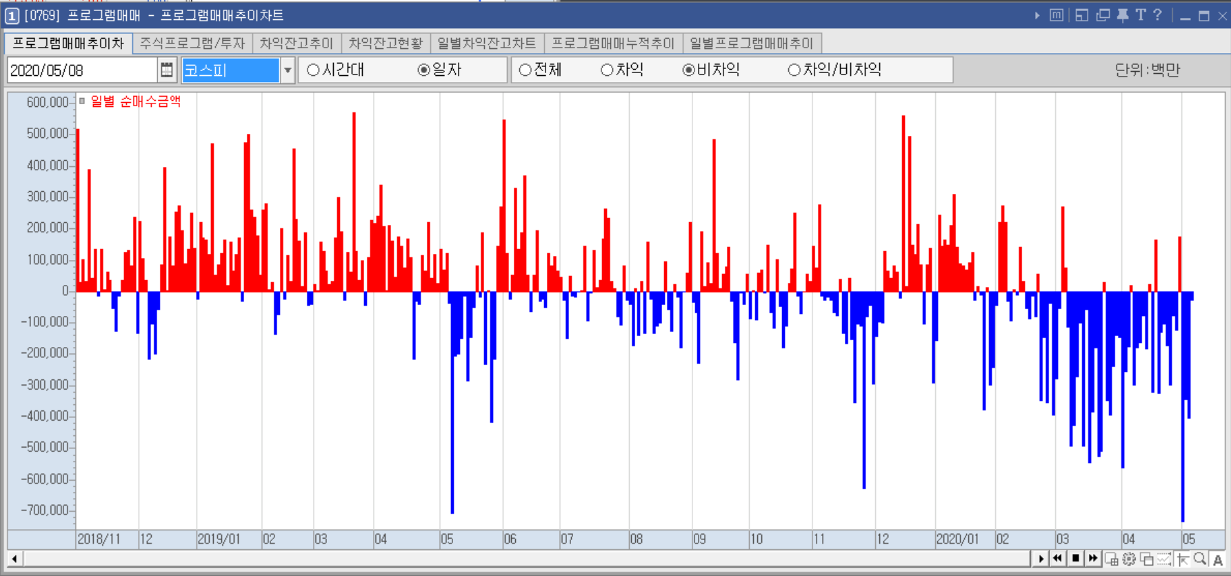 프로그램 매매 - 간만에 비차익 거래가 쬐금 순매수 모드임.. AI가 페이크를 딥러닝한듯..ㅎㅎ