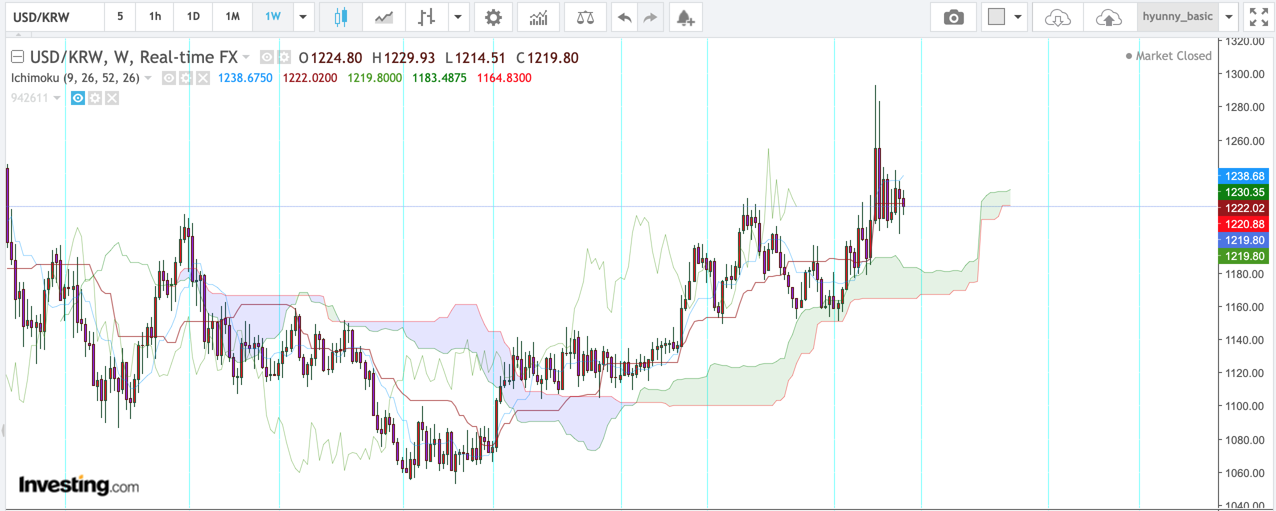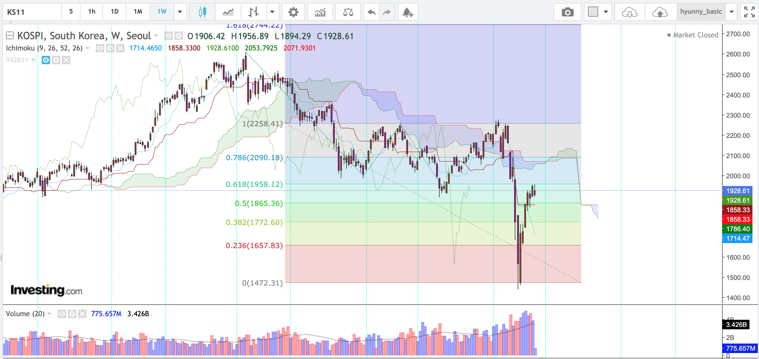 코스피 - 신흥국증시는 좀 긴장해야 하는 시기이고, 이번주 종가가 경계를 못 뚷음. 고로 하방으로 좀더 염두를 보고 다음주 임해야 하겠고, 다음주는 만기일이 잇는 주간이라 변동성이 엄청 클것이라고도 생각을 해두어야 할듯.