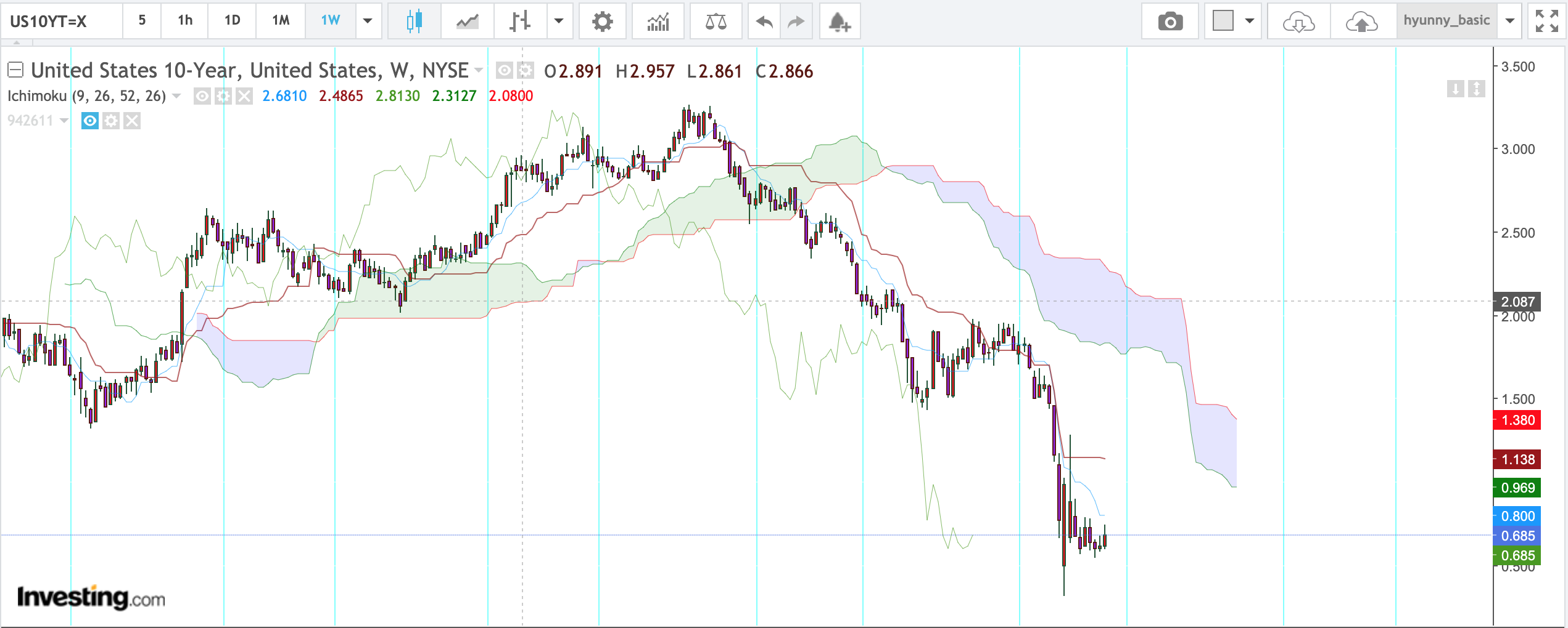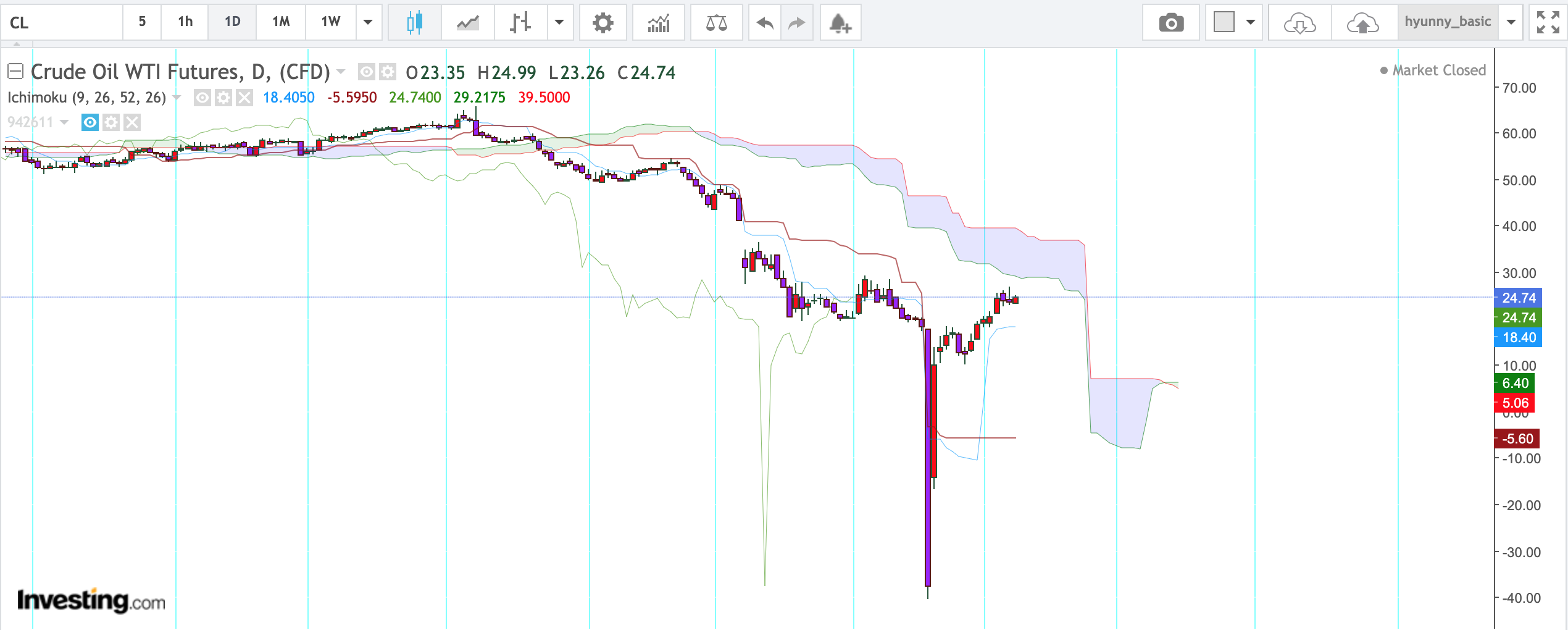 오일 - 지속 하락할듯. 일간 챠트에서 저게 오를거 같지는 않음. 지금 딱히 더이상 감산 논의가 없고, 경제봉쇄가 풀렸다고는 하나, 일자리가 점점 사라져서 소비가 크게 살아나지는 않을듯 함.