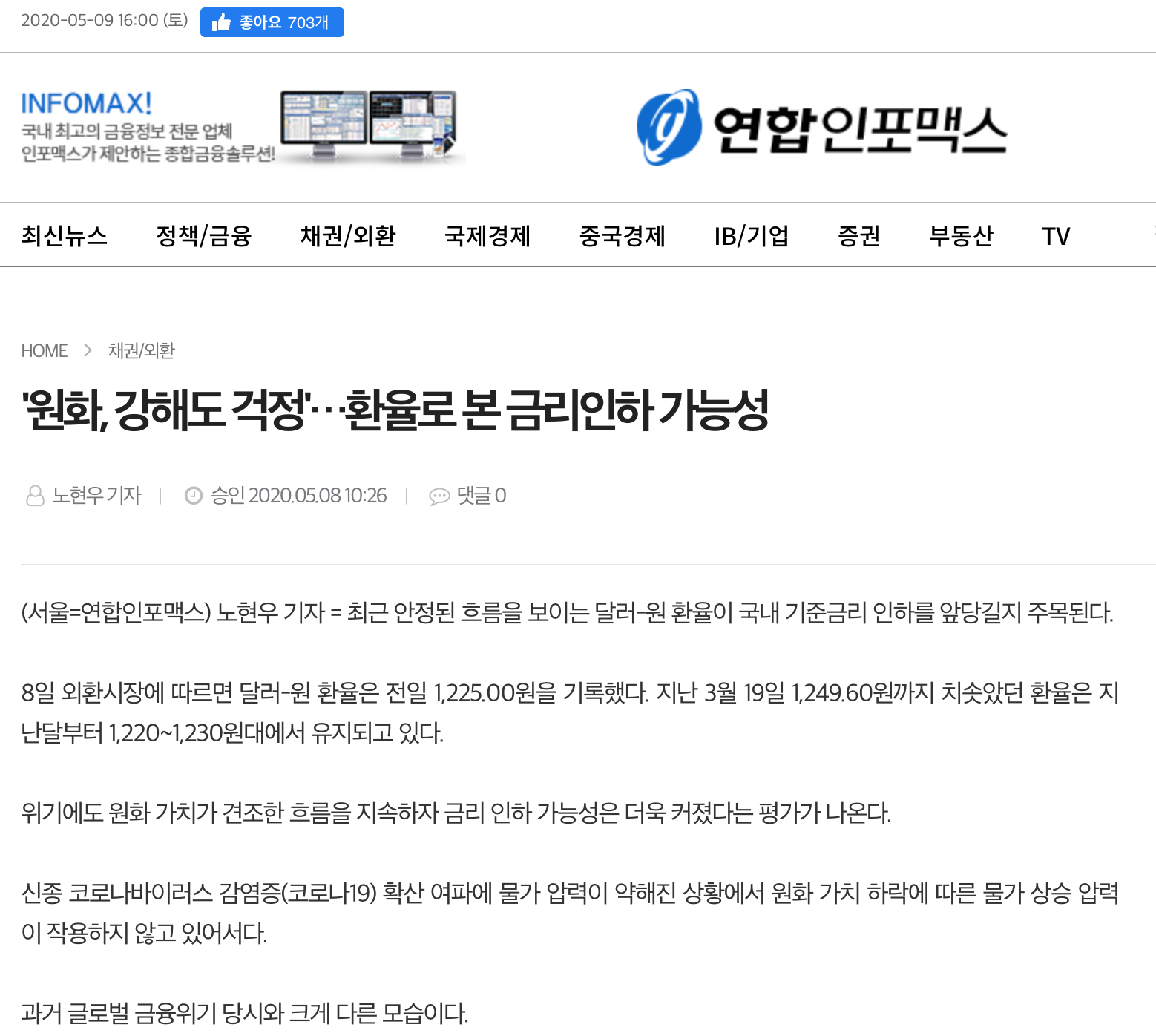 코로나 좀 잠잠해지니, 금리인하 기사가 슬슬 나옴.