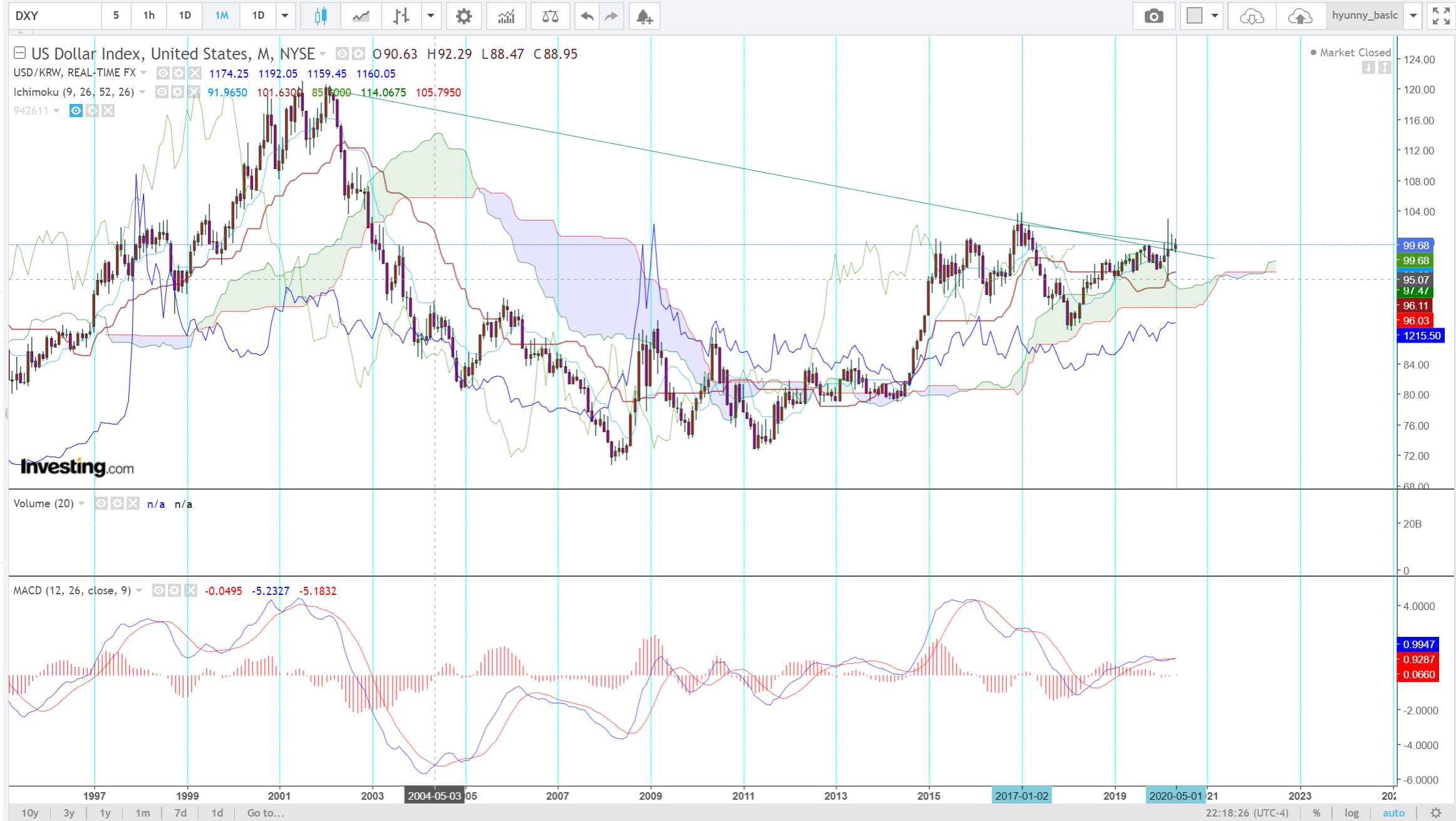 달러인덱스 - 뭐 챠트상으로는 상승모드인데, 저거는 진짜 미국 연준(메이져) 마음이기때문에 방향성보다는 의떤 정책을 연준에서 발표하느냐, 트럼트가 어떤 정책을 집행하느냐로 결정되는듯 함.