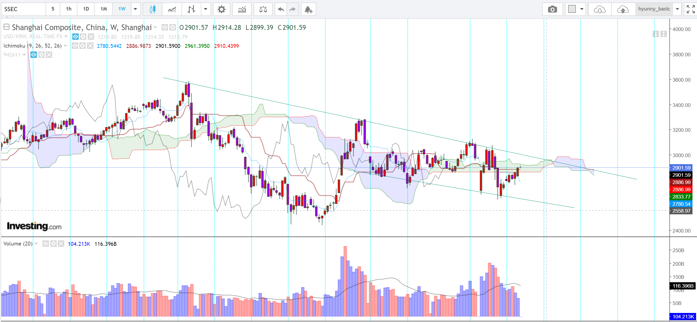 상해증시 - 아주 서서히 하락모드....