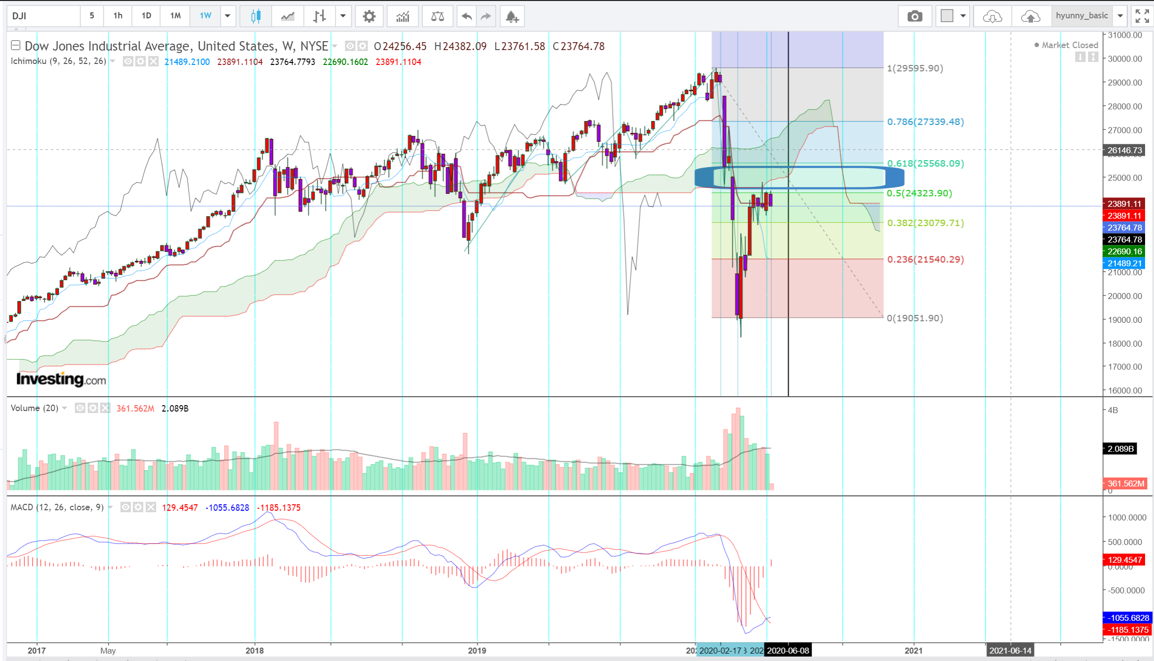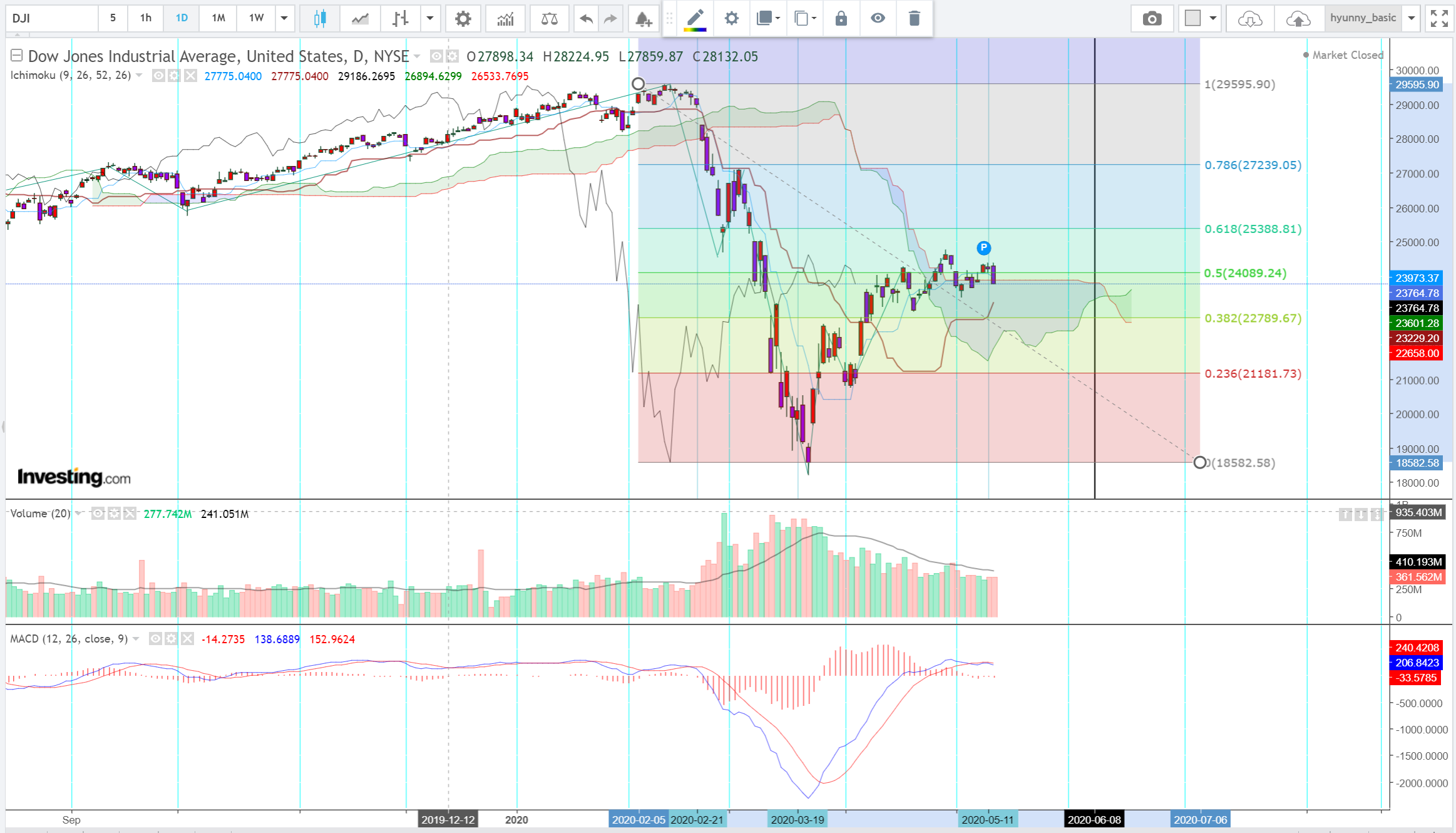 다우 - 음봉이 생각보다 길게 나오고 마감했슴. 뭔가 전초전일수도... 이러다 또 연준에서 양적완화정책을 새로운거 발표하면 위로 또 올라갈테니.. 무조건 하방이라는 생각은 하지말고 횡보/강보합 도 염두에 두고 대응.