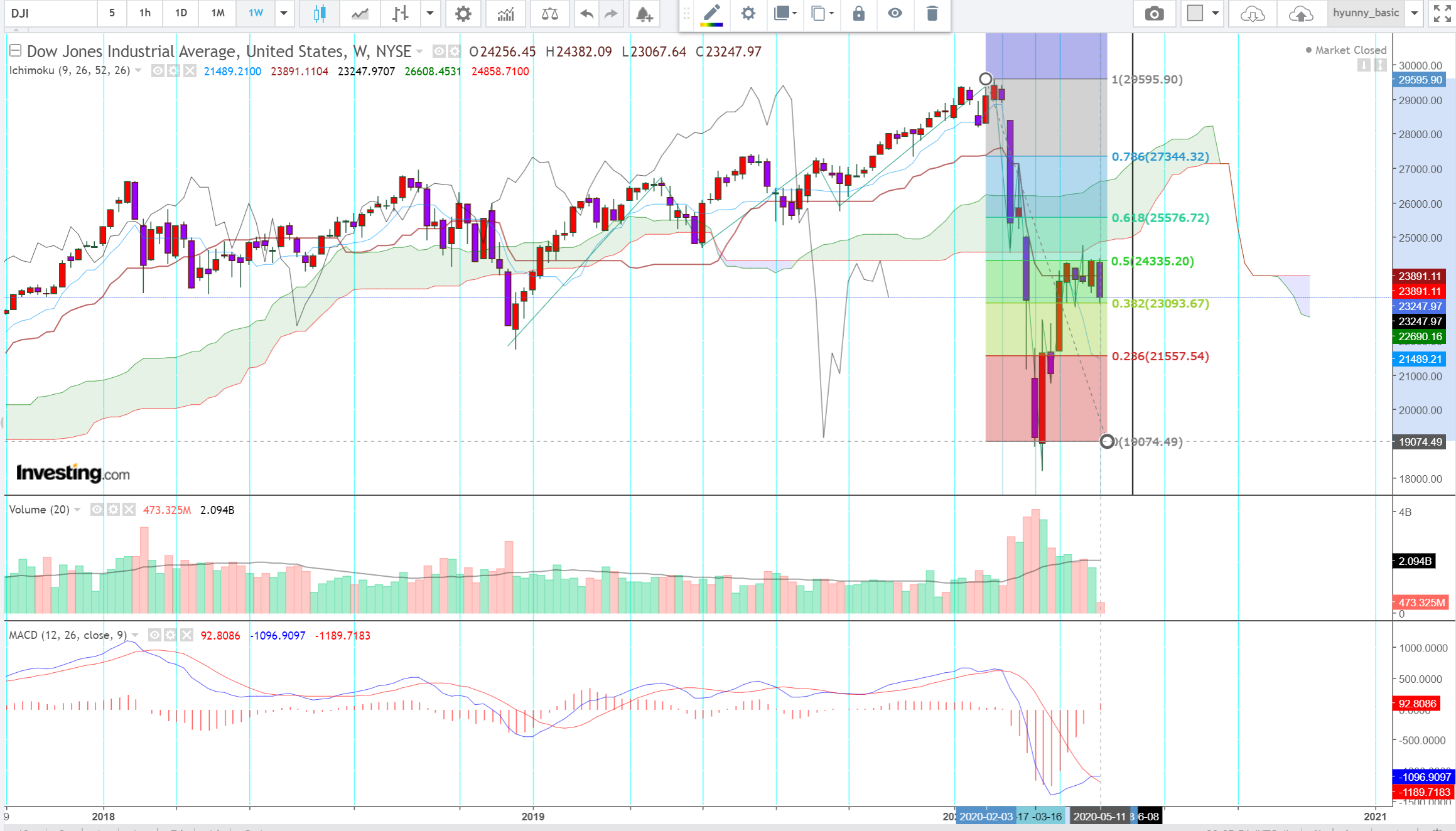 코스피 - 61.8% 에서 다시 아래로 보고 있긴한데.. 돈을풀고 있으니 어찌될지 모름.