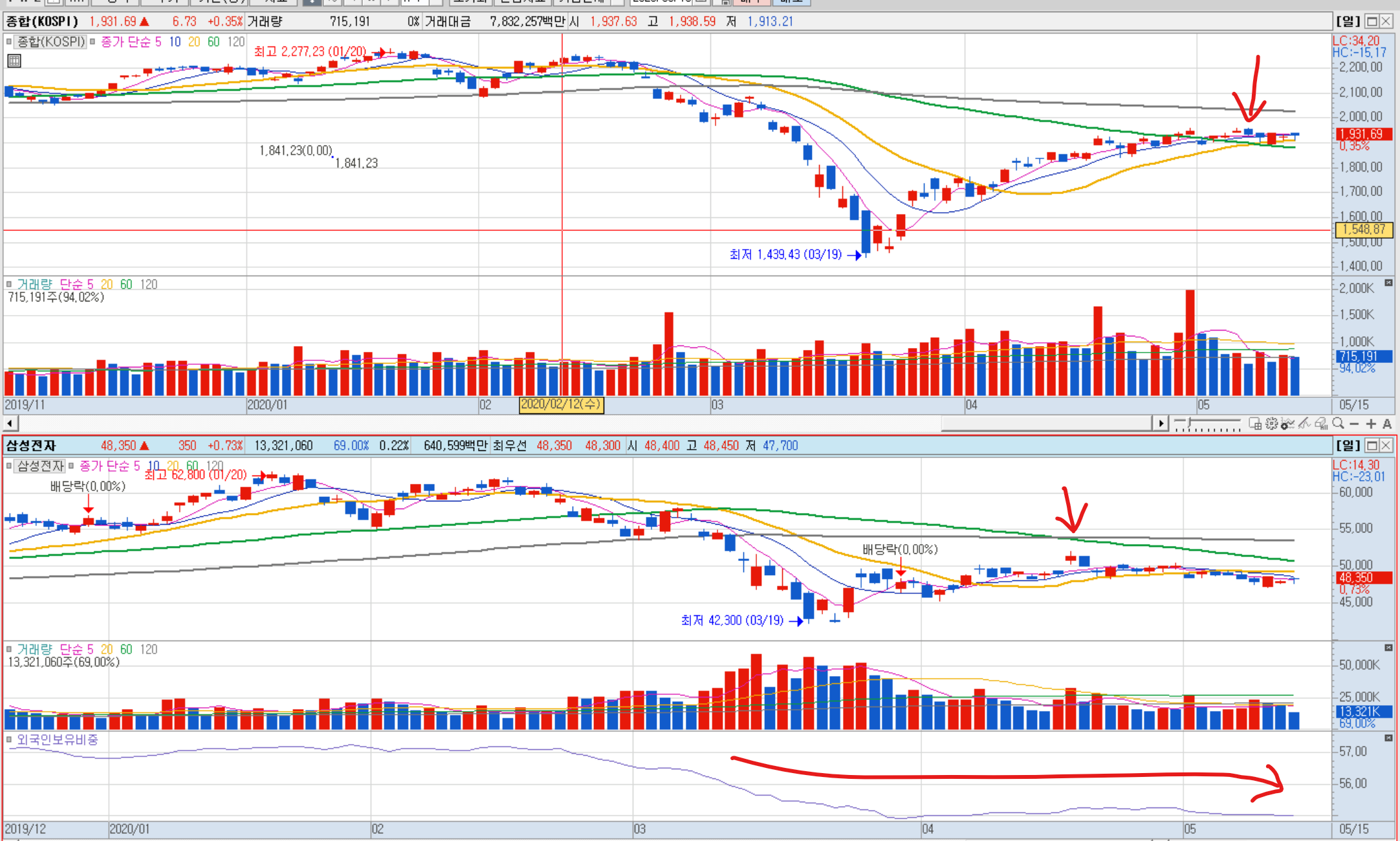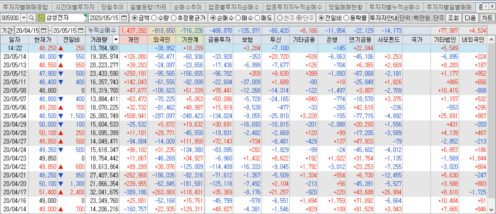 코스피&삼전 - 큰손들 자금 뭍어두고 있는것일까.... 여튼 지금 개인이 일반 개투비중은 얼마 안되고 큰손들인거 같음. 저렇게 오랬동안 매수세로 일관하기도 어려운데...