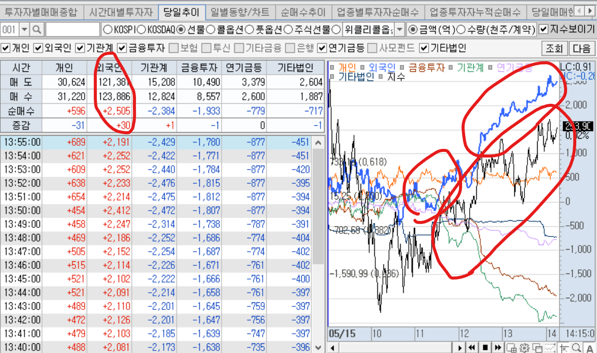 선물 - 오후되니 무섭게 매수함.. 뭔가 있나..