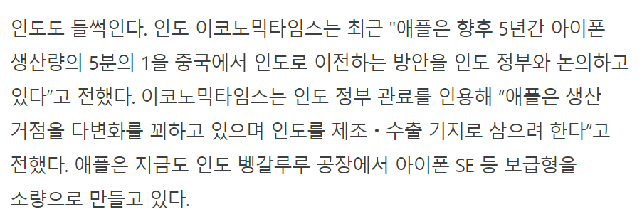 애플도 중국을 떠나나? 그 이면에는 인도/대만이 떠오르고 있는듯.