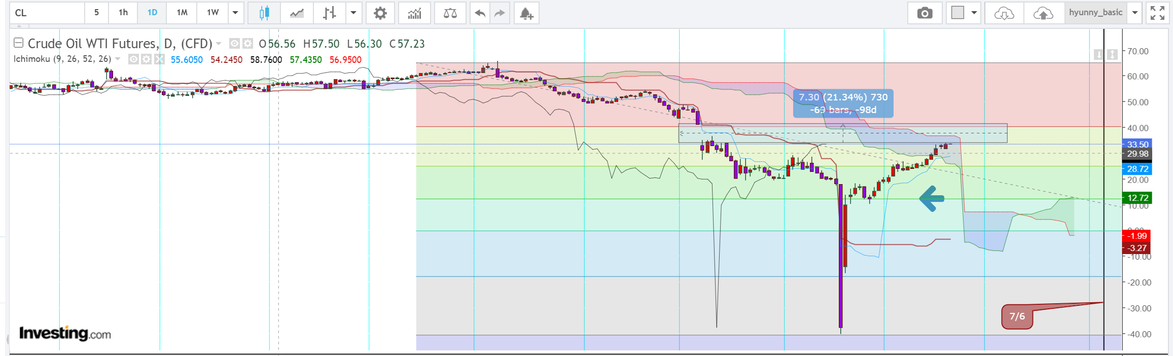 유가 - 지난 갭 하락 저항구간에 도달... 추후 돌파여부 확인 해야 함