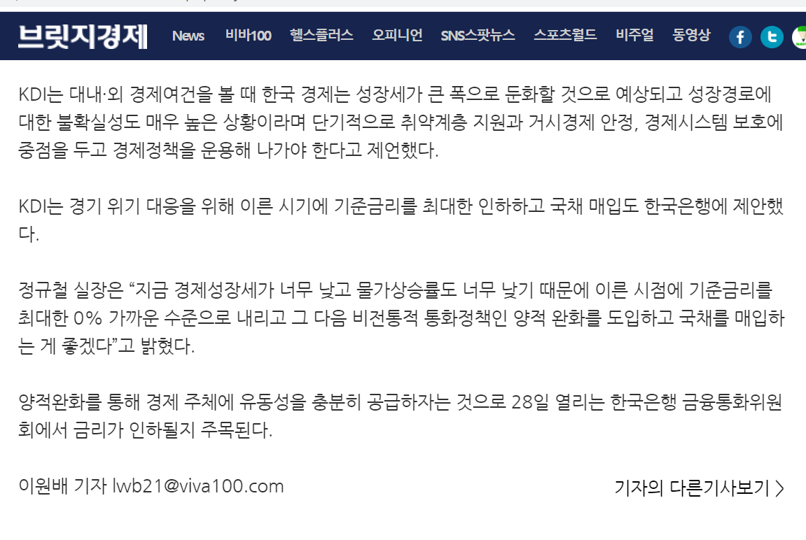 한국경제 큰폭으로 둔화예상, 그래서 금리를 더 내려야 한다..