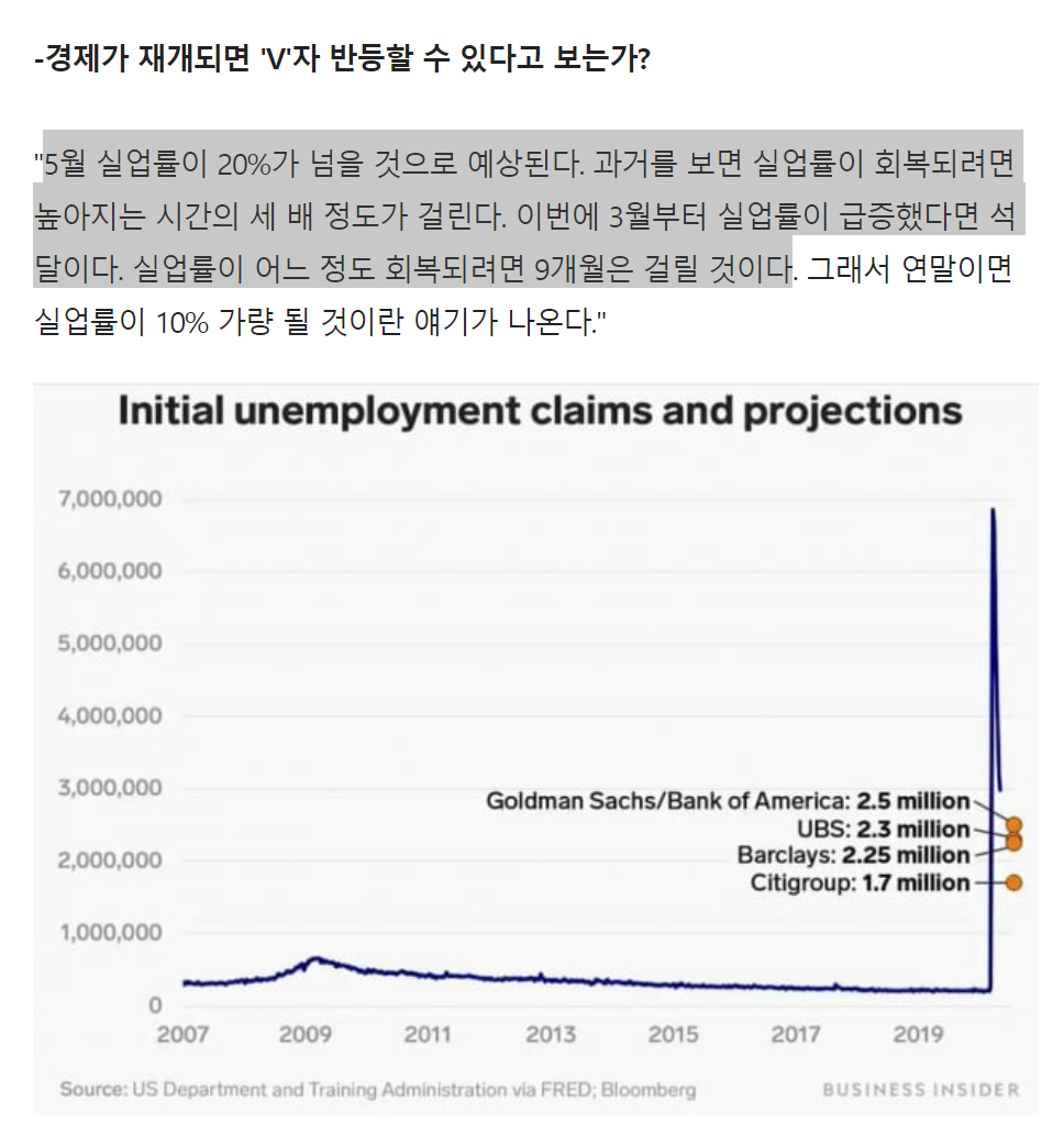 9월에나 되야 실업률이 회복될 수 있다... 그러면... 9월까지 횡보이거나, 하락을 막으려면, 엄청난 돈을 또 풀 수도있어보임. 결국 마이너스금리 하는건가?