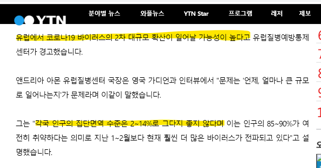 집단면역 실험한 유럽... 집단면역결과가 그다지 좋지 않다.. 2차 유행 경고...