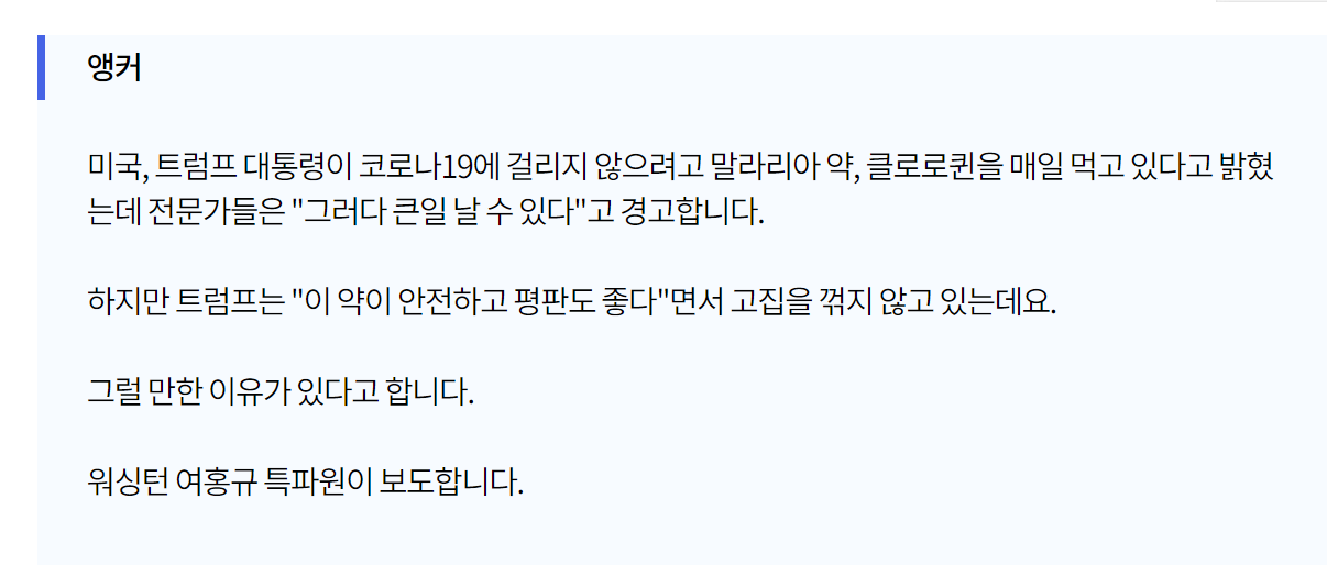 ㅋㅋ 결국 이게 치료제인가보네.. 클로로퀸...