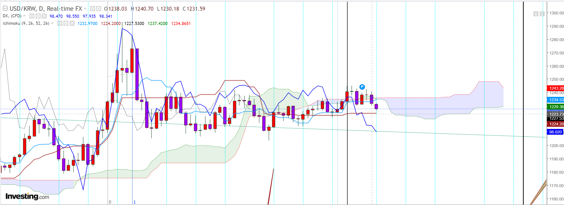 원화는 지속 약세분위기임.. 요거는 좀 조심해서 봐야 함.. 외국인 투자금이랑 밀접한 연관이 있기 때문에...