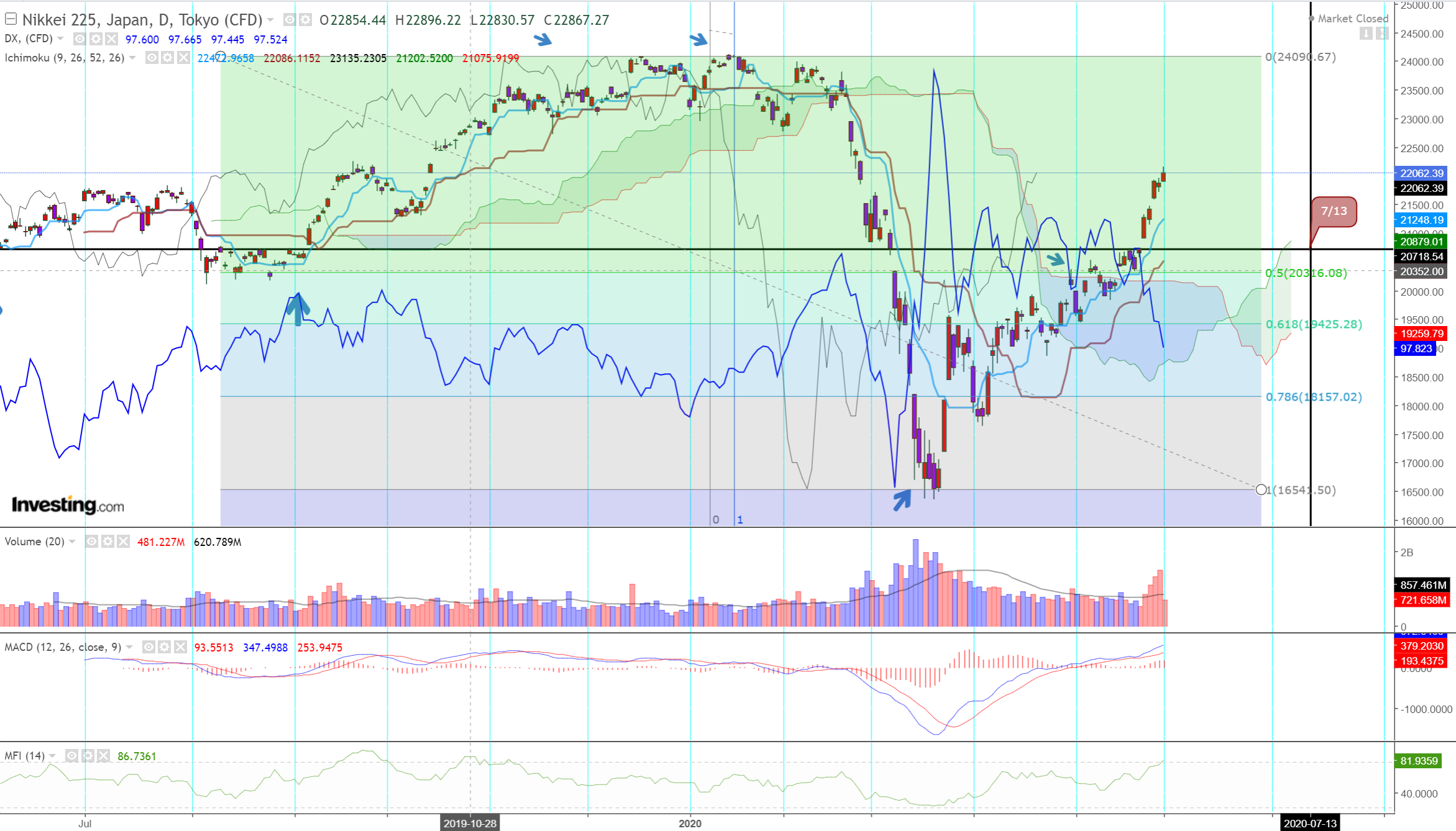 nikkei - 상승중.. 달러인덱스가 상승하고 있으므로 엔화 유동성을 좀더 증가 시킬 수 있슴.