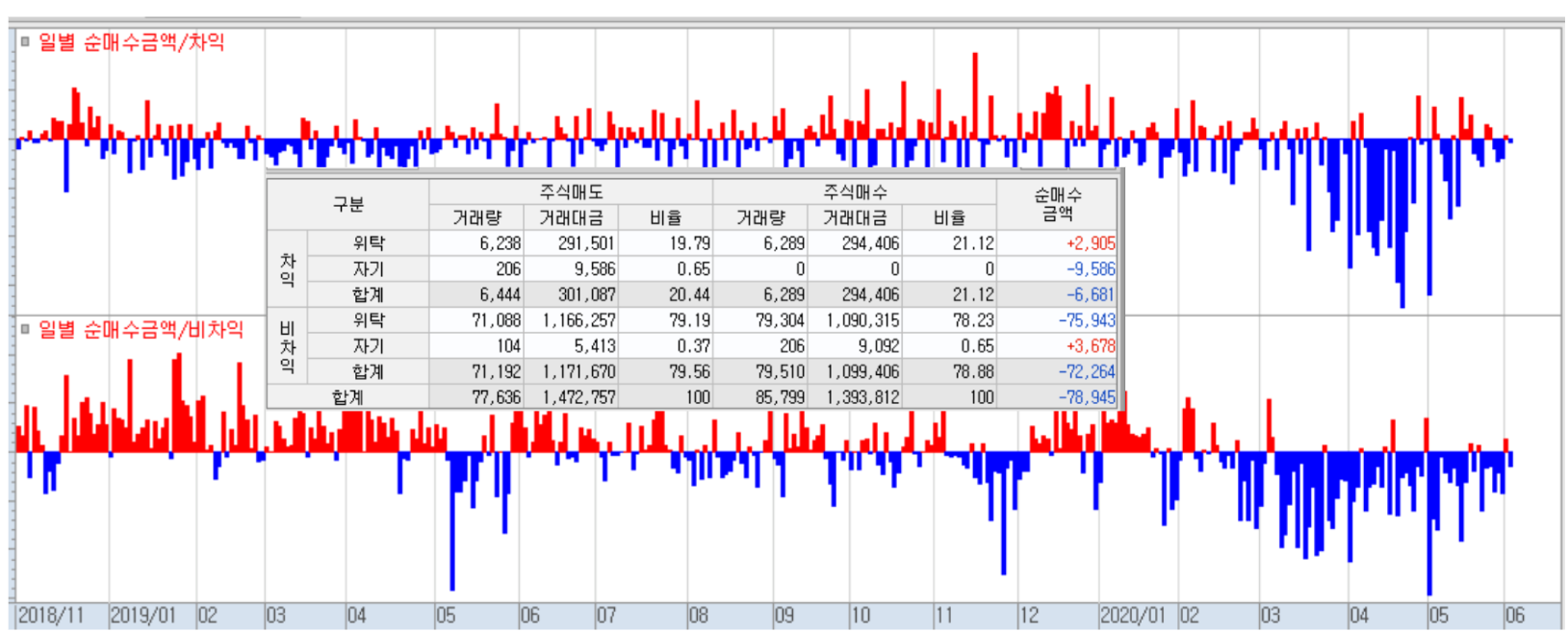 2020년 2월 이후로 프로그램은 지속적으로 매도우위를 유지하고 있습니다.