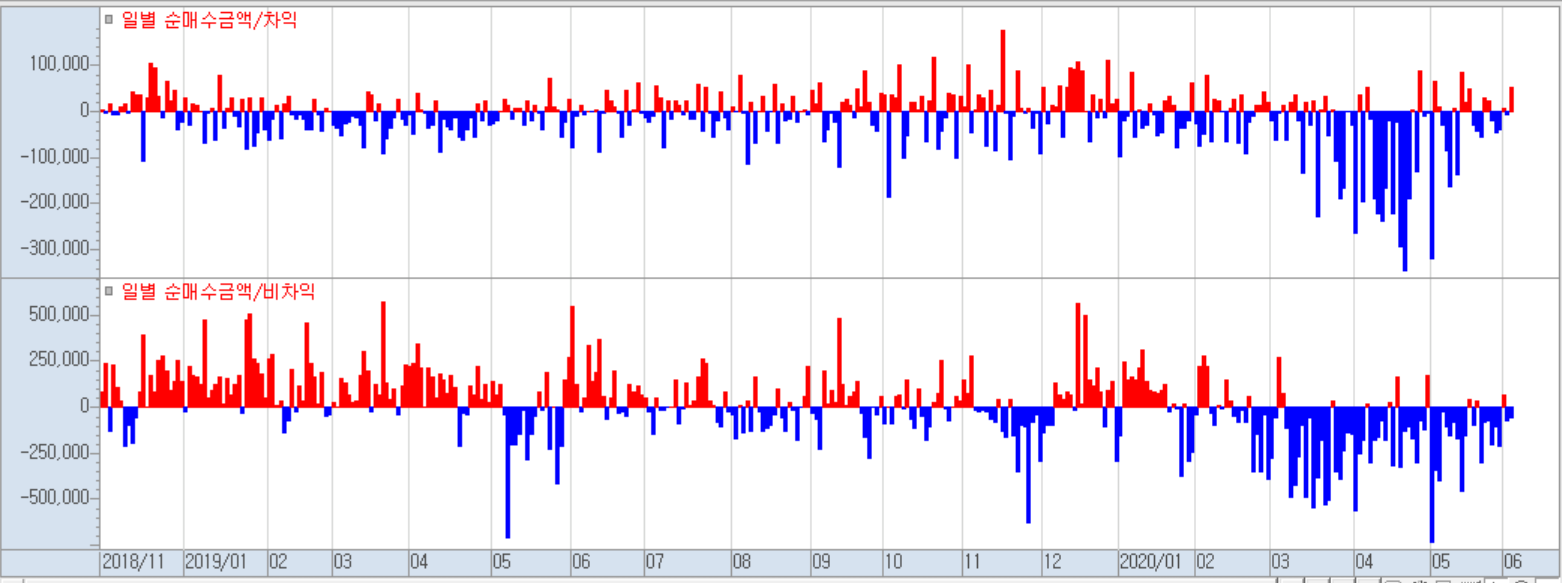 비차익거래에서 지속적으로 매도가 나오고 있는 부분에 대해서 항상 주의하여야 하겠습니다.
