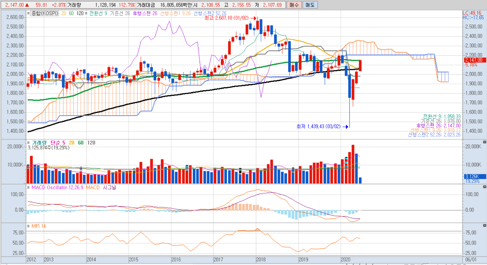 코스피 상황입니다.