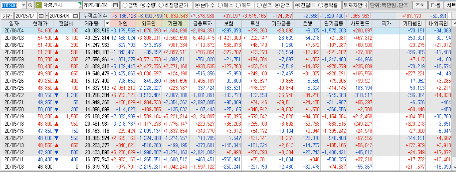 삼성전자 가격이 상승하면서 개인들의 물량이 외국인 기관으로 이동하고 있는 모습입니다.