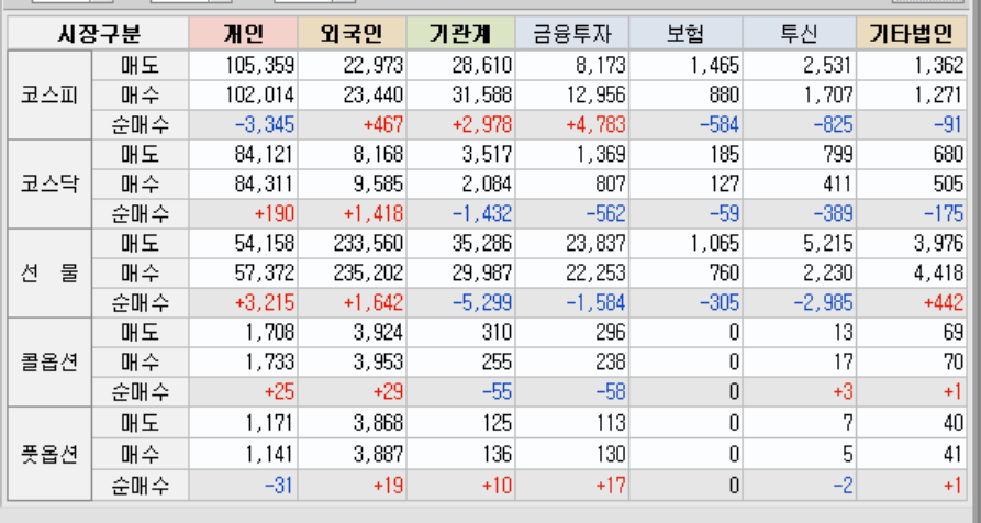 현물은 기관에서 개인 물량을 대부분 매수하였습니다.
