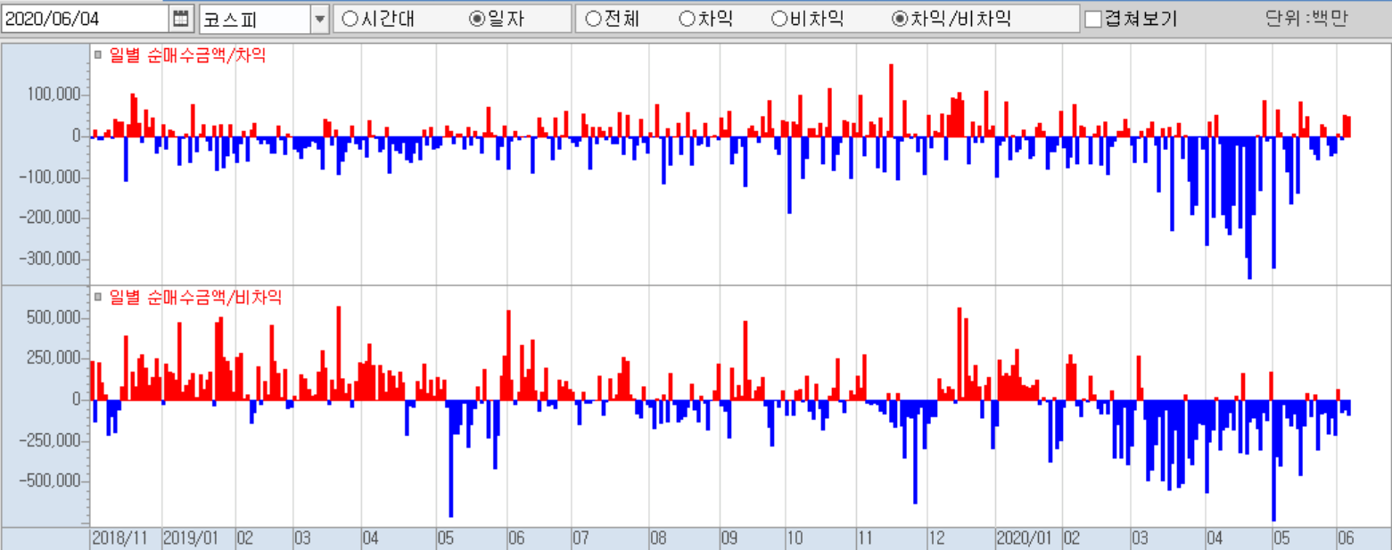 비차익거래에서 지속적으로 매도우위가 이어지고 있는점을 항상 염두에 두어야 하겠습니다.