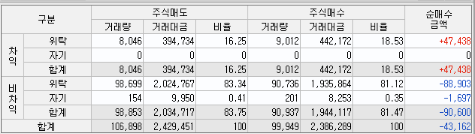 차익거래는 매수우위, 비차익거래는 매도우위로 마감하였습니다.