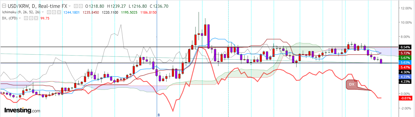 원,달러 환율은 현재 박스권에서 움직이고 있습니다.