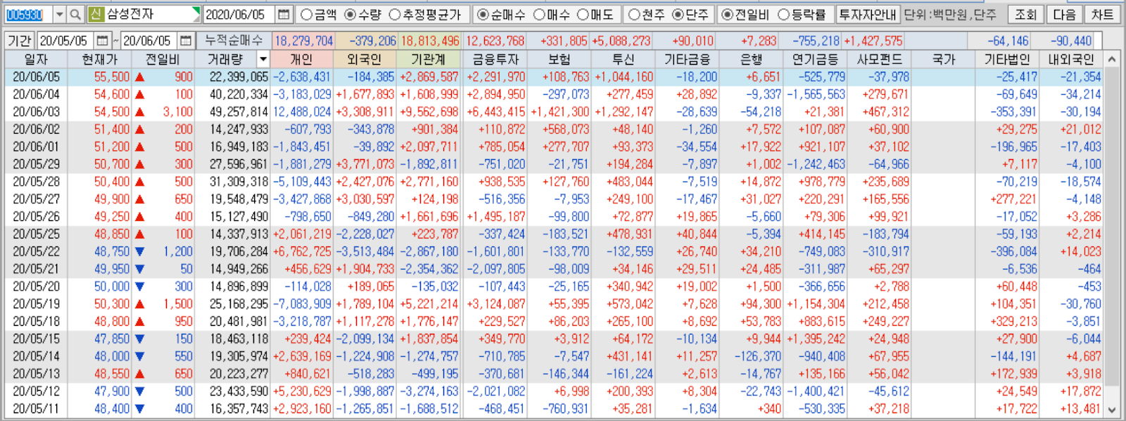 삼성전자의 개인들 물량이 나오면서 확실히 지수흐름과 동일하게 가고 있습니다.