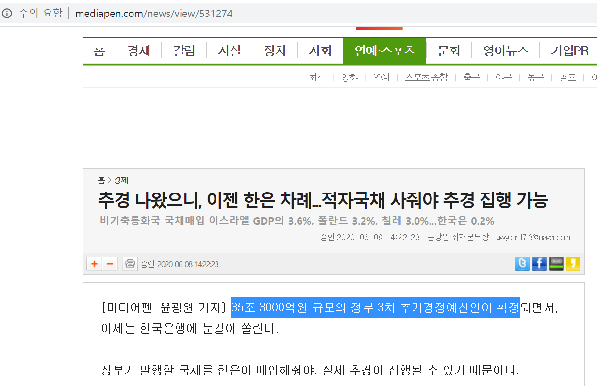 35조 추경 확정. 한은 국채 매입시기 잘 봐야 할듯.