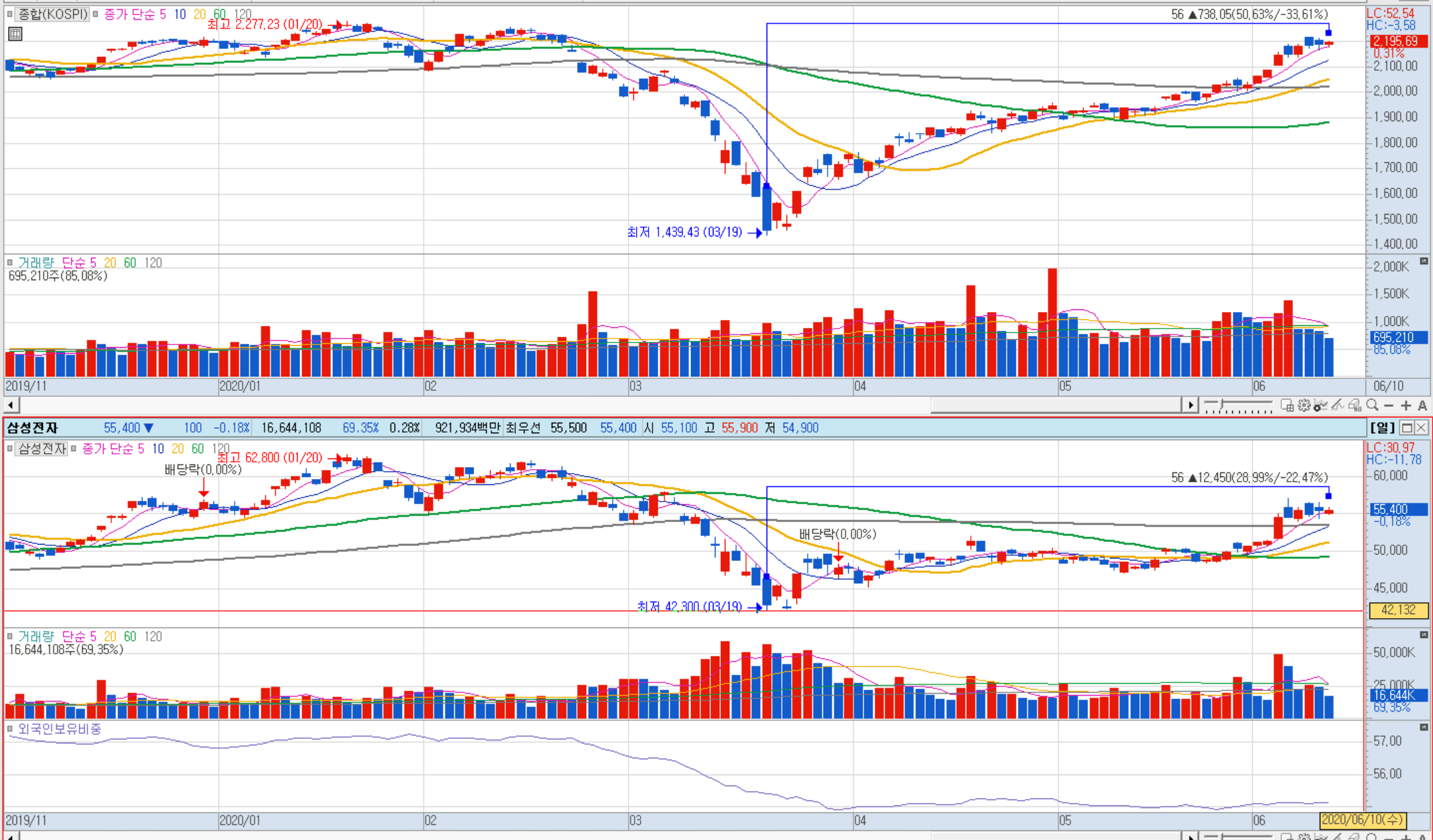 지수 vs 삼전 - 삼전은 좀더 갈거 같음.