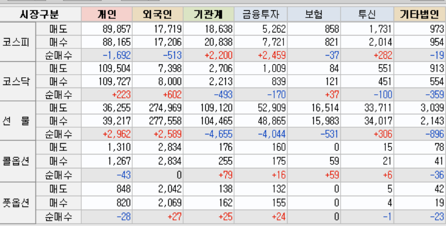 선물 - 개인,외국인 매수, 기관 매도.