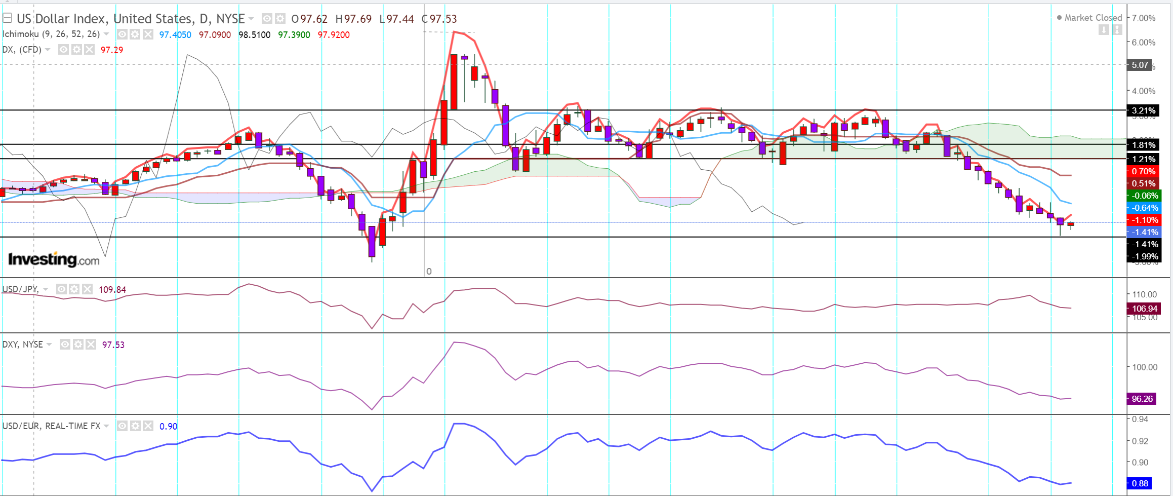 달러인덱스 - 지속 하락중.