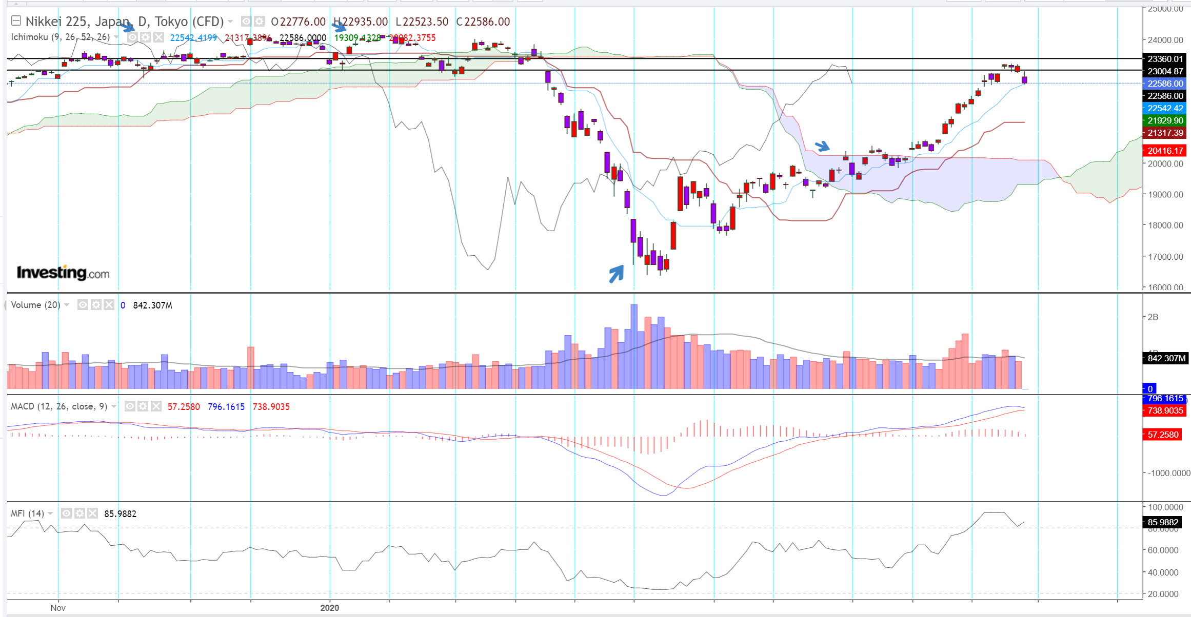 니케이 - 쉬어가는중. 다우와 싱크중.