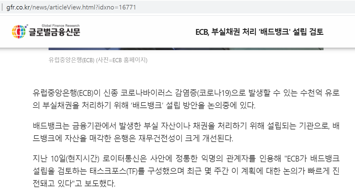유럽 배드뱅크(휴지통) 검토중.. 돈으로 부실기업 정리하려나..
