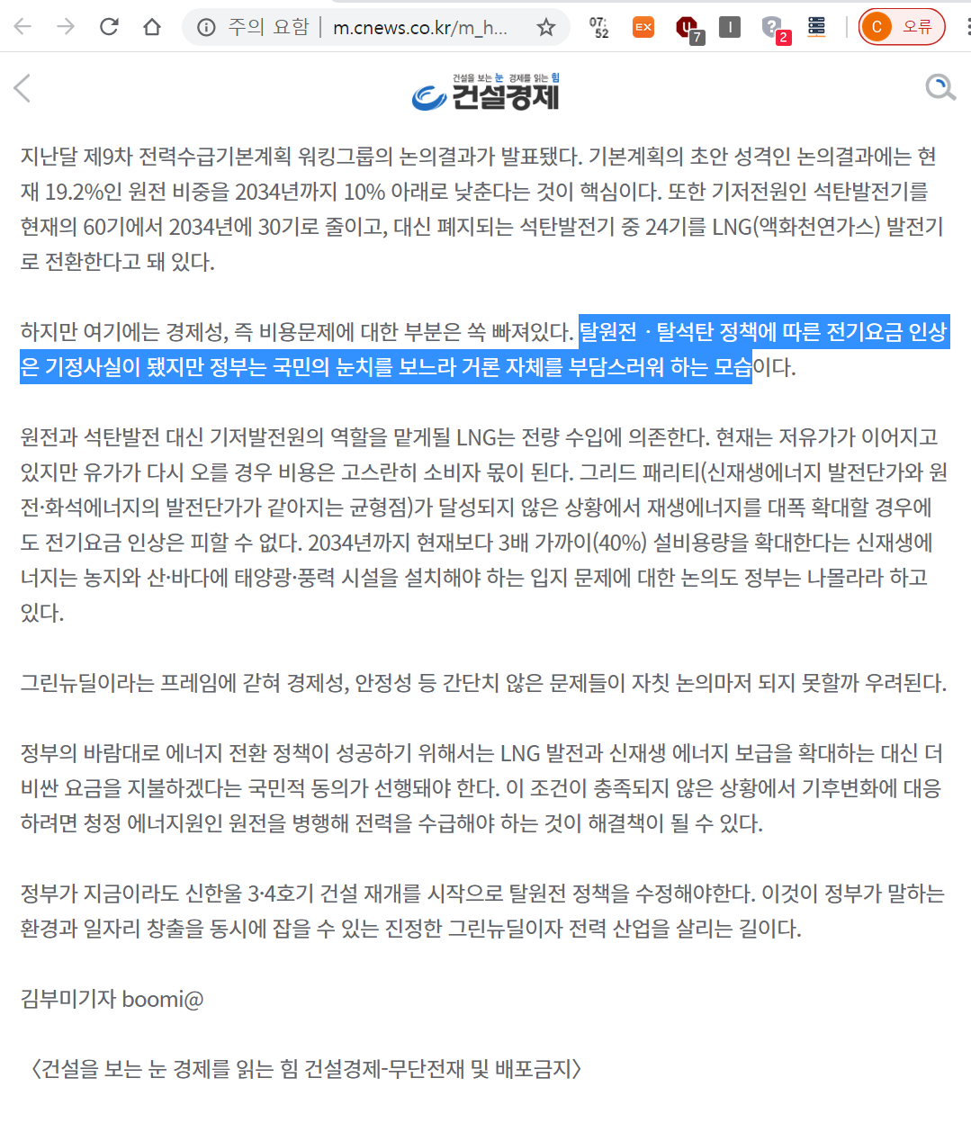 전기료 인상가능성 있슴.