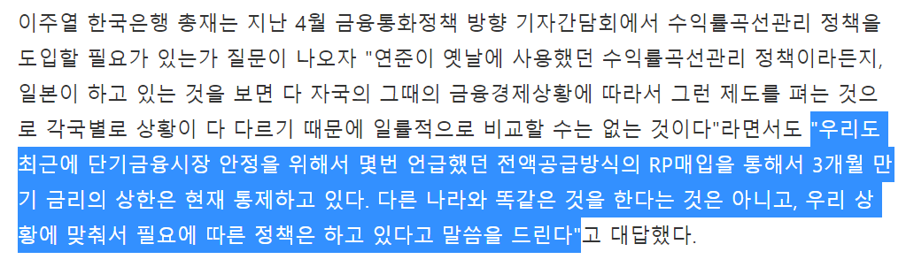 아래 이주열 총재의 회견을 보면 대응이 어려울거 같음.