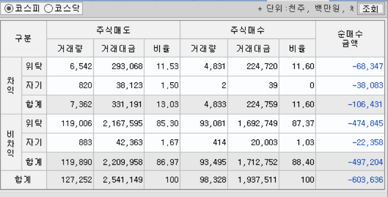 프로그램 - 외국인 현물 안사고, 프로그램 비차익은 연일 매도만 때리고 있슴. 상당히 위험함.