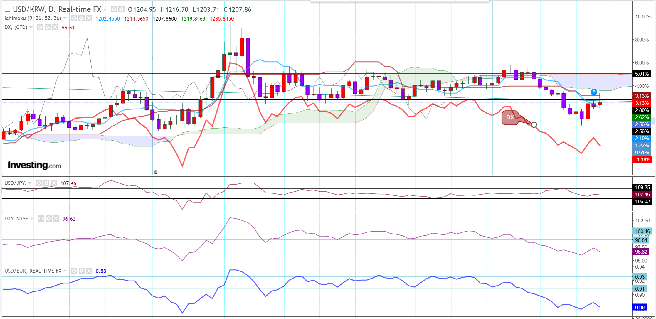 usd/krw - 달러인덱스 스대로 반영되고 있슴.