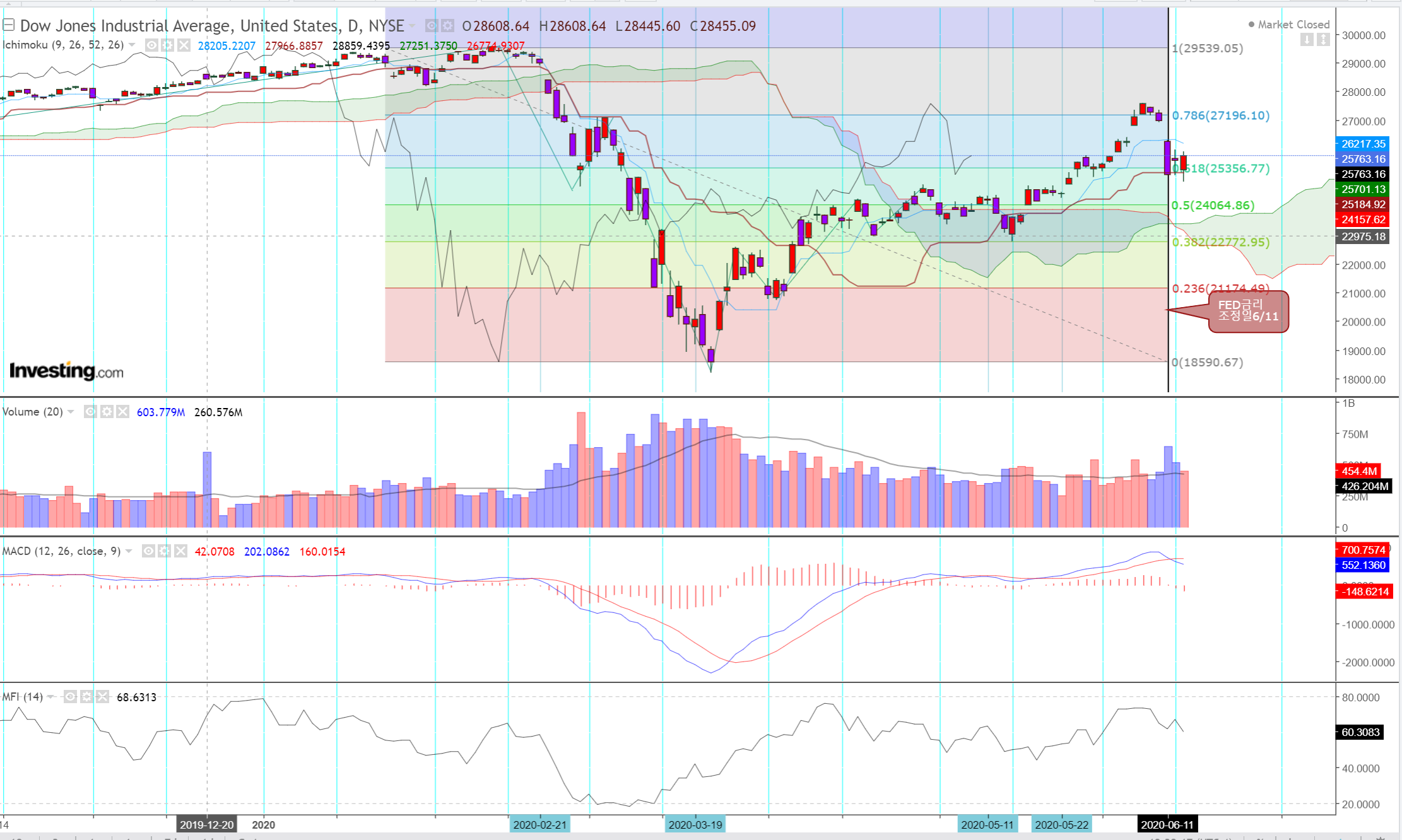 다우 - 과하락에 따른 반등으로 보여지고, 좀 오르고 다시 또 한번 훅 내려갈수도 있어 보이고... 까먹는건 한순간.